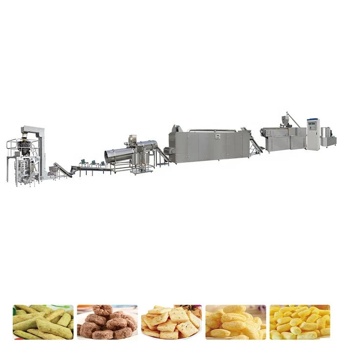 puffed snack food produksjonsutstyr er et multifunksjonelt utstyr, det har mange modeller, fleksibel utstyrskonfigurasjon, et bredt utvalg av råvarer, et bredt spekter av produkter, enkel betjening og så videre. I tillegg til å produsere frokostblandinger, kan den også produsere alle slags oppblåste matvarer, som sandwichris, Maixiang-kyllingnuggets, maishao, næringspulver, brødkli og så videre. Så lenge du bytter form og skrue, kan du produsere forskjellige produkter.